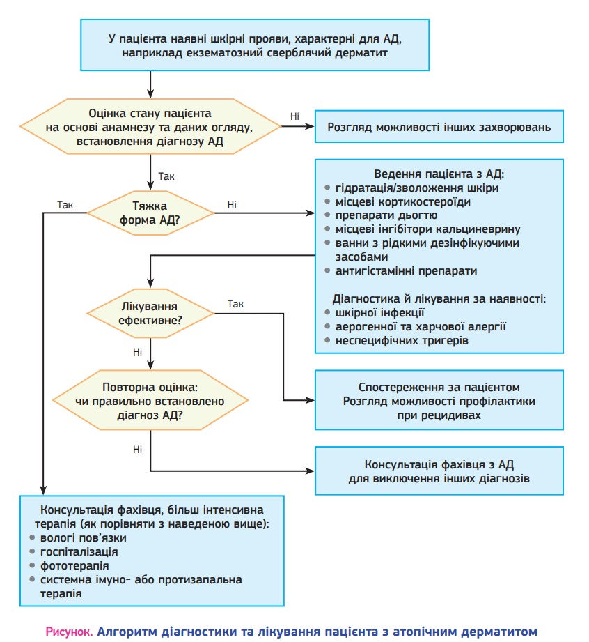 Основні етапи діагностування та ведення пацієнта з атопічним дерматитом (АД) представлено на рисунку.