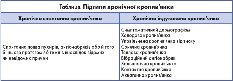 Гостра кропив’янка визначається спонтанними проявами симптомів протягом <6 тижнів, хронічна – >6 тижнів.