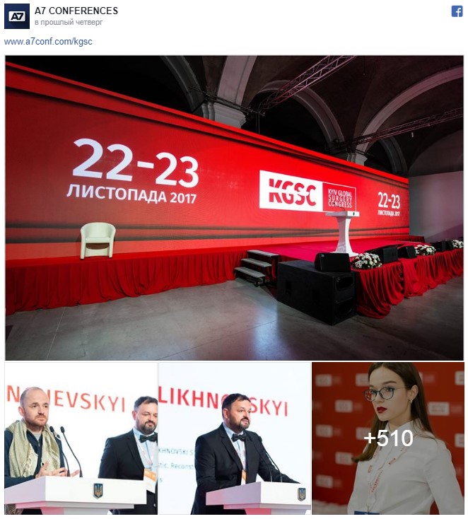 22-23 листопада 2017 року у м. Києві вперше відбувся Київський світовий хірургічний конгрес ‘17. Головна ідея заходу – створення найбільшої в Україні міжнародної дискусійної платформи, яка об’єднала українських хірургів зі всього світу у сфері невідкладної, травматичної та воєнної хірургії. Організатор Форуму – Медичний центр “VALIKHNOVSKI SURGERY INSTITUTE”, Співорганізатор – A7 CONFERENCES.