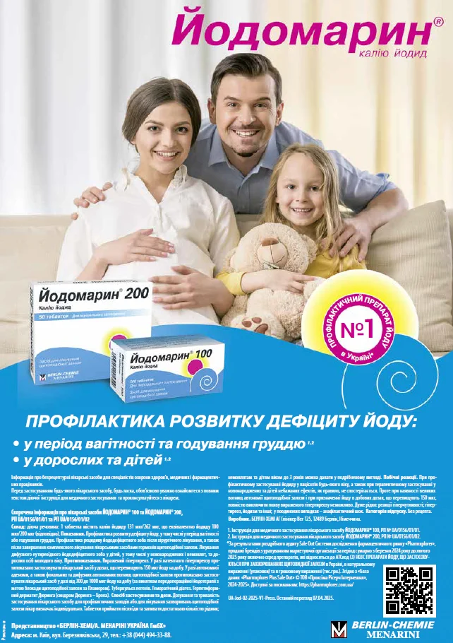 Згідно з оновленими рекомендаціями (RCOG, 2025) щодо ведення тиреоїдних розладів під час вагітності, усі вагітні та жінки, які годують грудьми, повинні отримувати йод у кількості приблизно 200-250 мкг/добу. Лікарський засіб Йодомарин® 200 (виробництво «Берлін-Хемі АГ», Німеччина) повністю відповідає цим вимогам.