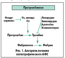 Прогноз катастрофического АФС во многом зависит от того, насколько рано поставлен диагноз и начата «агрессивная» терапия. Для лечения «катастрофического» АФС используется весь арсенал методов интенсивной и противовоспалительной терапии, применяемый для лечения критических состояний при ревматических болезнях (рис. 1) [35,36].