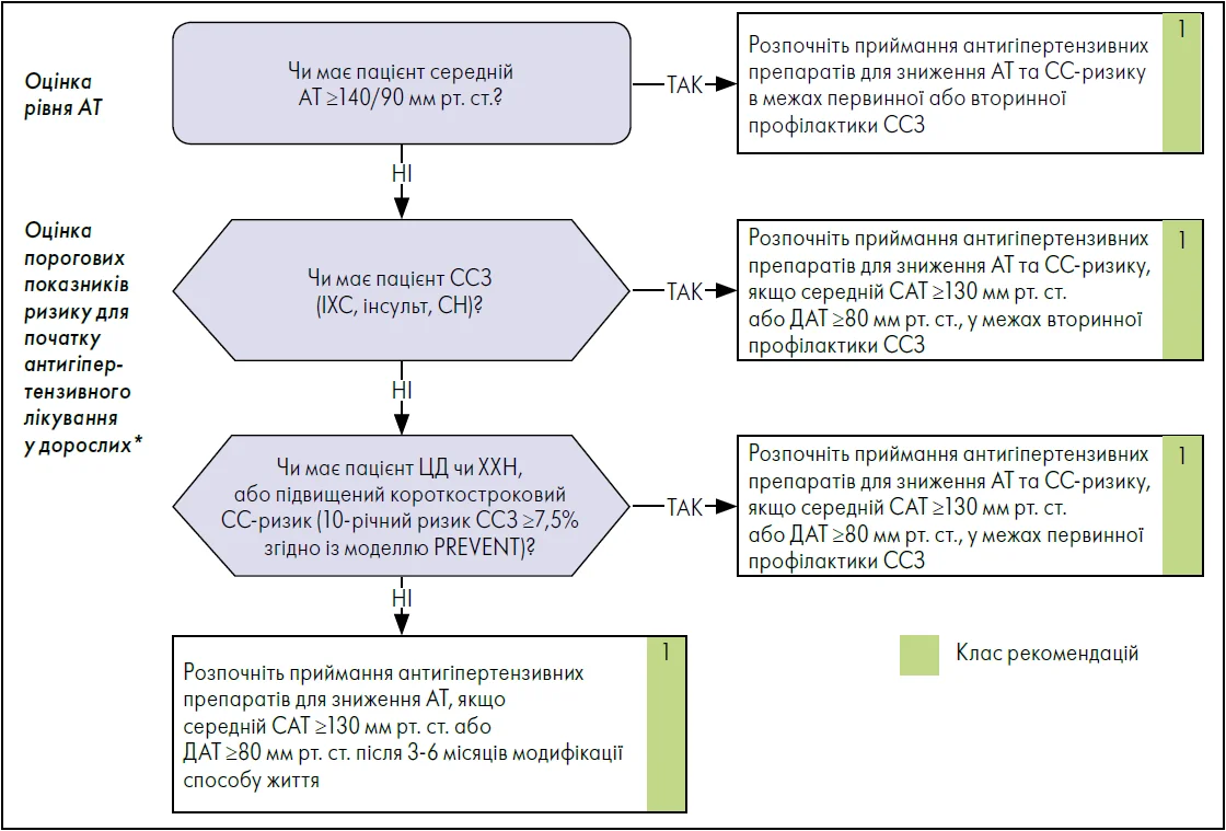 Вибір антигіпертензивного лікування на основі порогових значень АТ та СС-ризику