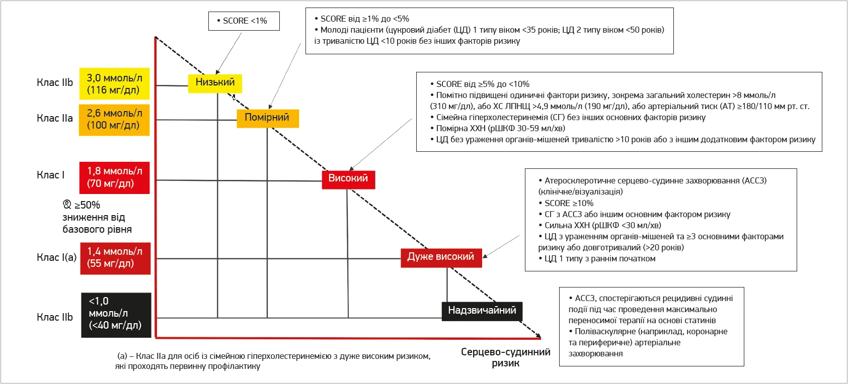 Цілі лікування ХС ЛПНЩ за категоріями загального серцево-судинного ризику