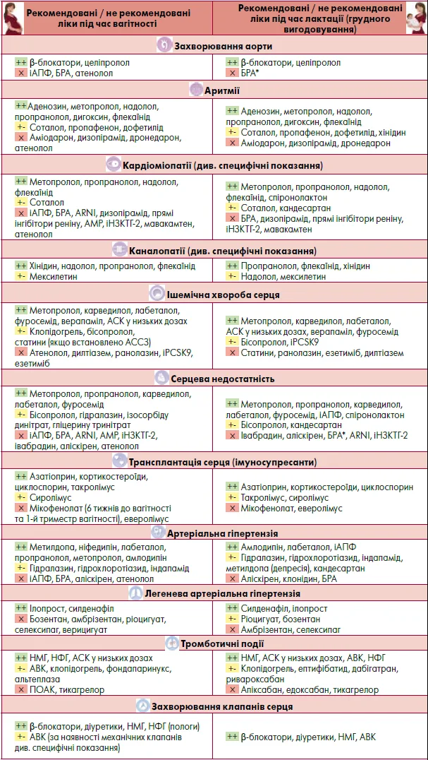 Препарати, що рекомендовані та не рекомендовані для застосування під час вагітності та лактації / грудного вигодовування, представлені на рисунку.