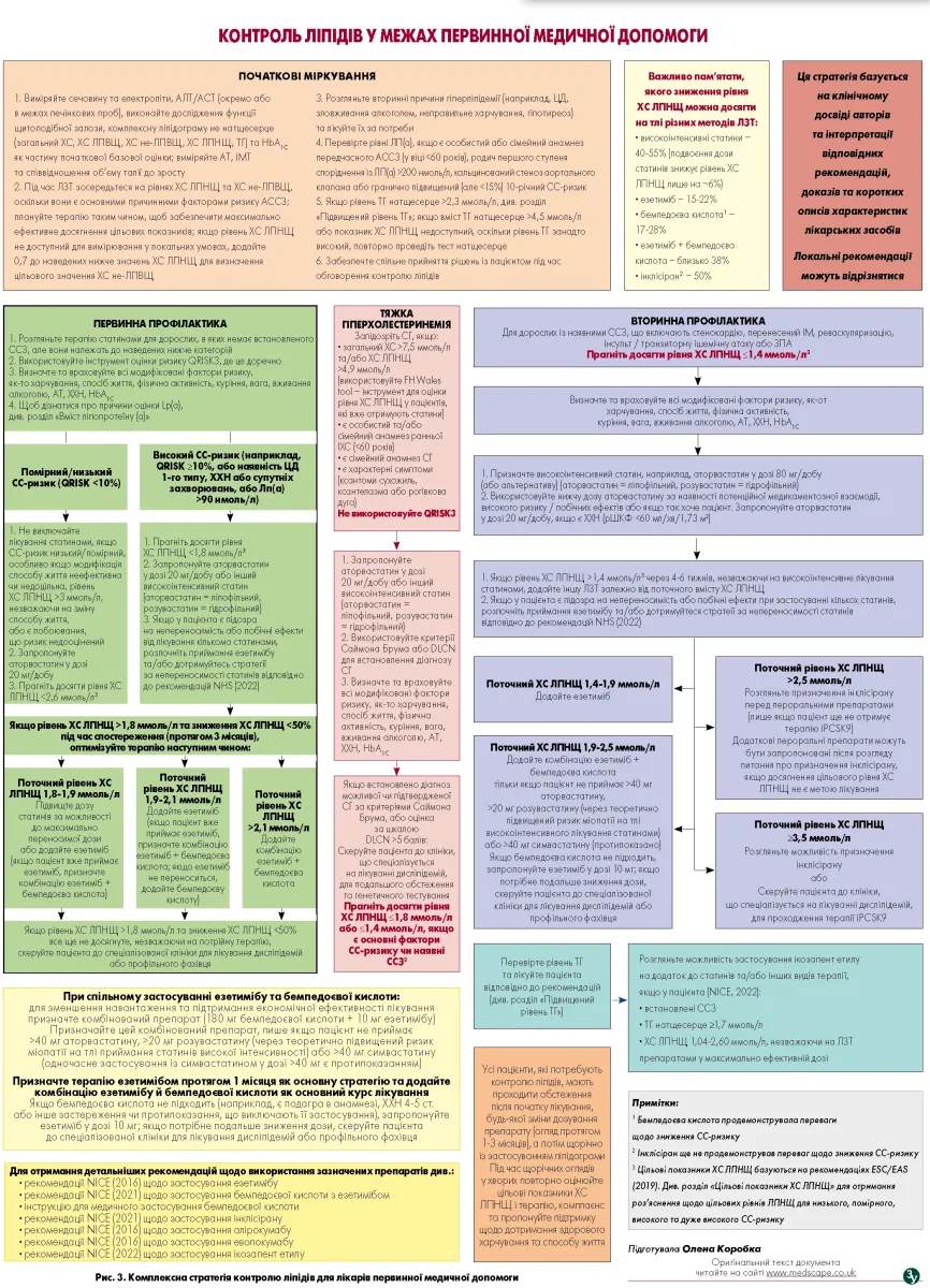 Комплексна стратегія контролю ліпідів для лікарів первинної медичної допомоги представлена на рисунку 3.
