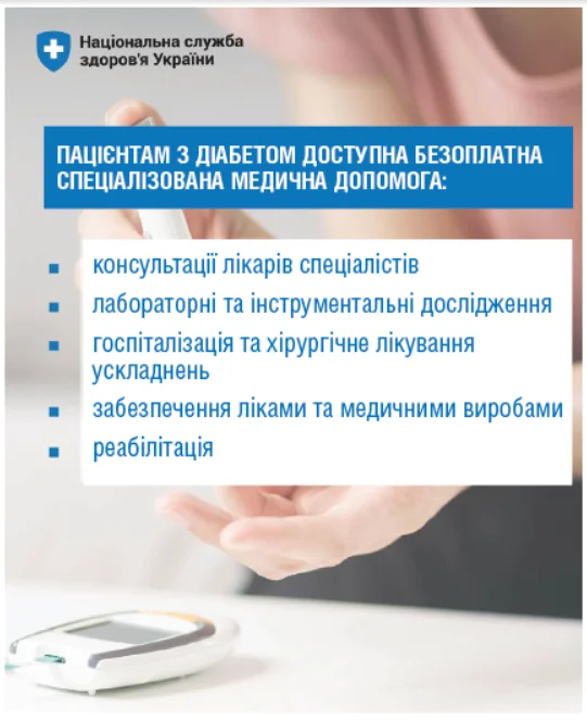 Держава гарантує пацієнтам із діабетом доступ до комплексного медичного обслуговування, що надається в рамках Програми медичних гарантій: