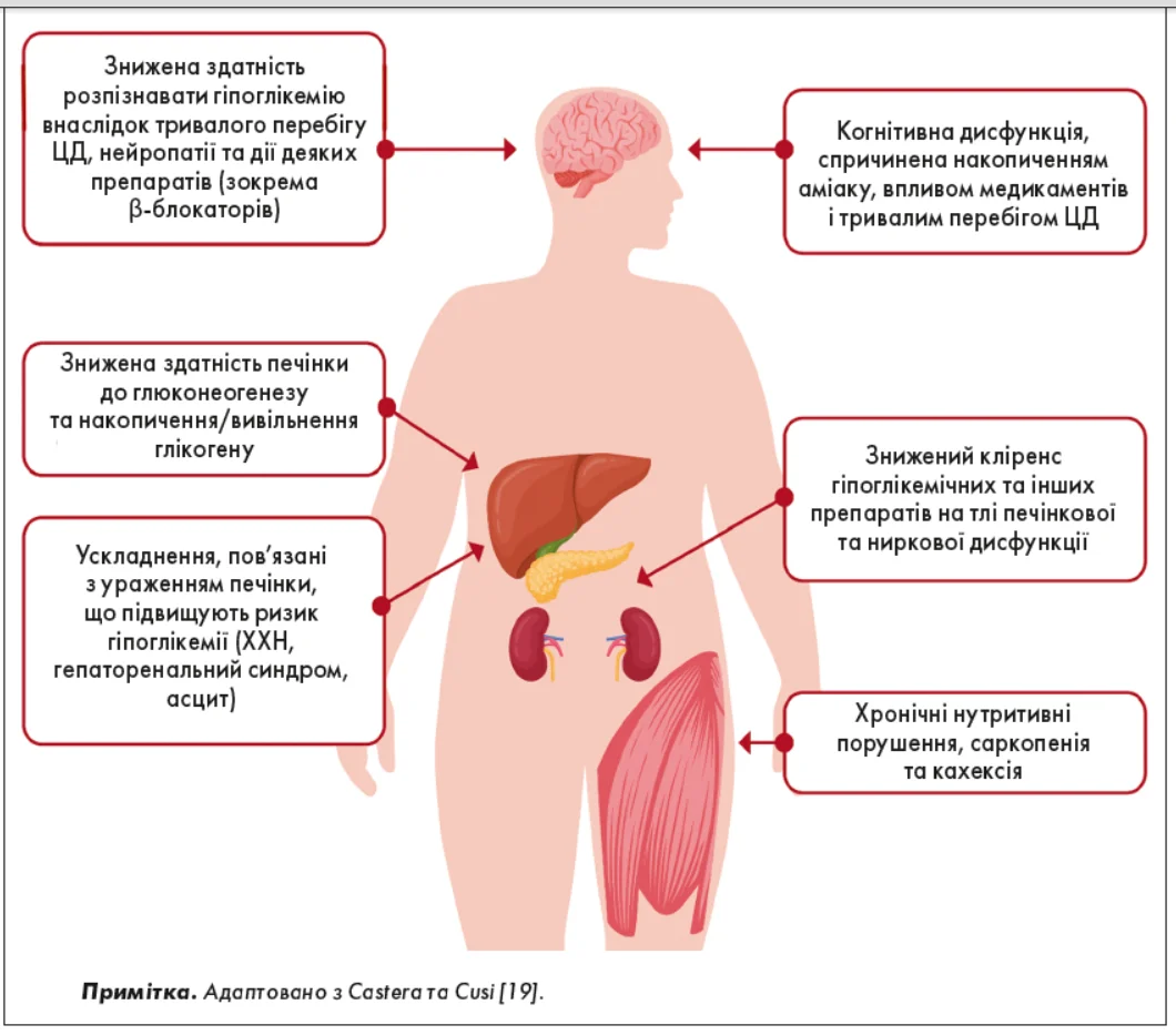 Рис. 6. Складнощі в розпізнаванні гіпоглікемії під впливом чинників ризику при цирозі