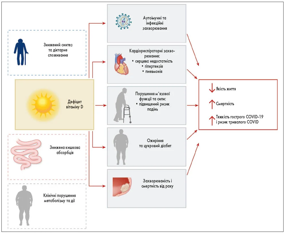Рис. 2. Позаскелетні ефекти дефіциту вітаміну D та їхній вплив на здоров’я людини