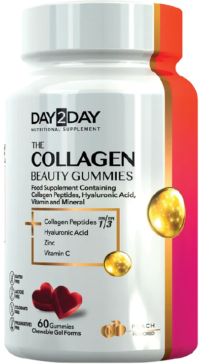 Остання інновація – дієтична добавка Day2Day The Collagen Gummies у формі жувальних таблеток. Комплекс виготовлений з гідролізату колагену, який легко перетравлюється та засвоюється. Продукт не містить глюкозного сиропу, лактози, глютену, консервантів і барвників; підходить людям із чутливим травленням та особливими дієтичними потребами, а форма серця і приємний смак персика підсилюють емоційне й гастрономічне задоволення від вживання.