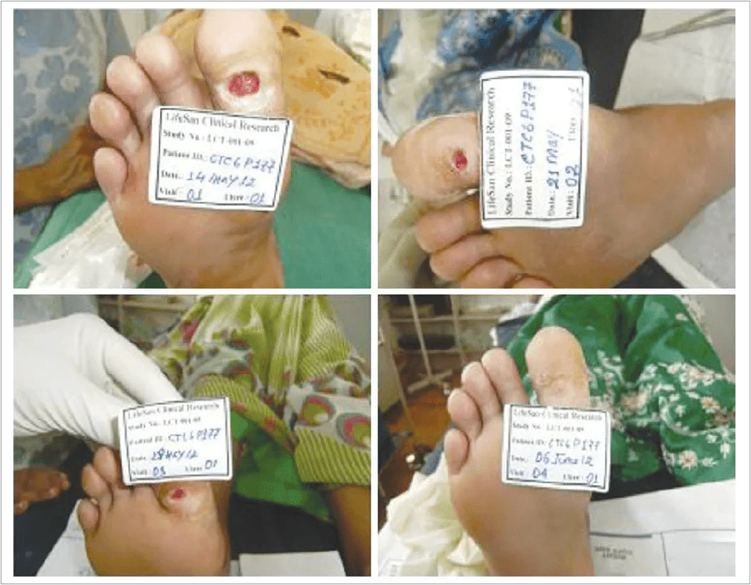 Рис. 3. Фотографії стоп пацієнтів під час візитів, на яких видно повне закриття рани
