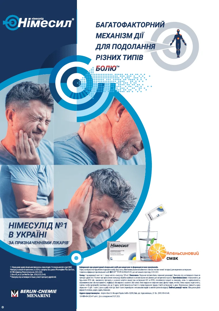 Німесил® – це німесулід № 1 в Україні за рекомендаціями лікарів, який уже багато років утримує провідні позиції серед НПЗП [25]. Стабільне лідерство на фармацевтичному ринку є не лише результатом якісного виробництва, а й наслідком усвідомленого вибору тисяч лікарів, які щодня застосовують препарат в амбулаторній практиці для лікування гострого болю та запалення.