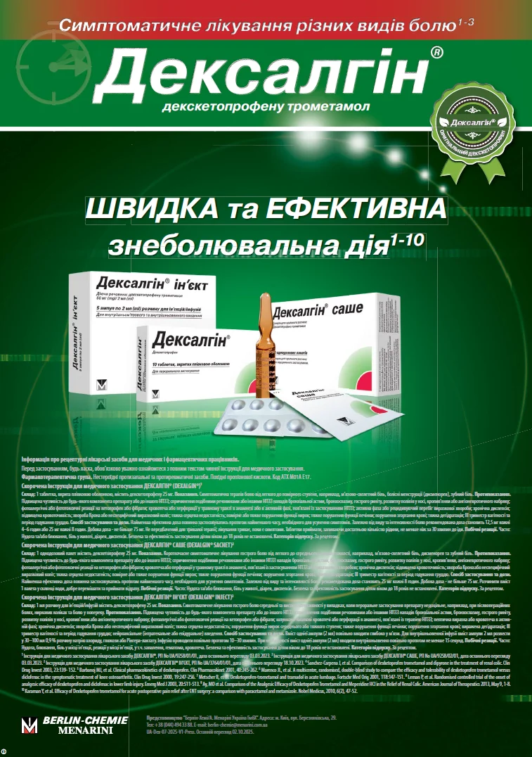 * В Україні ін’єкційний декскетопрофен виробництва Menarini представлений під назвою Дексалгін® ін’єкт.