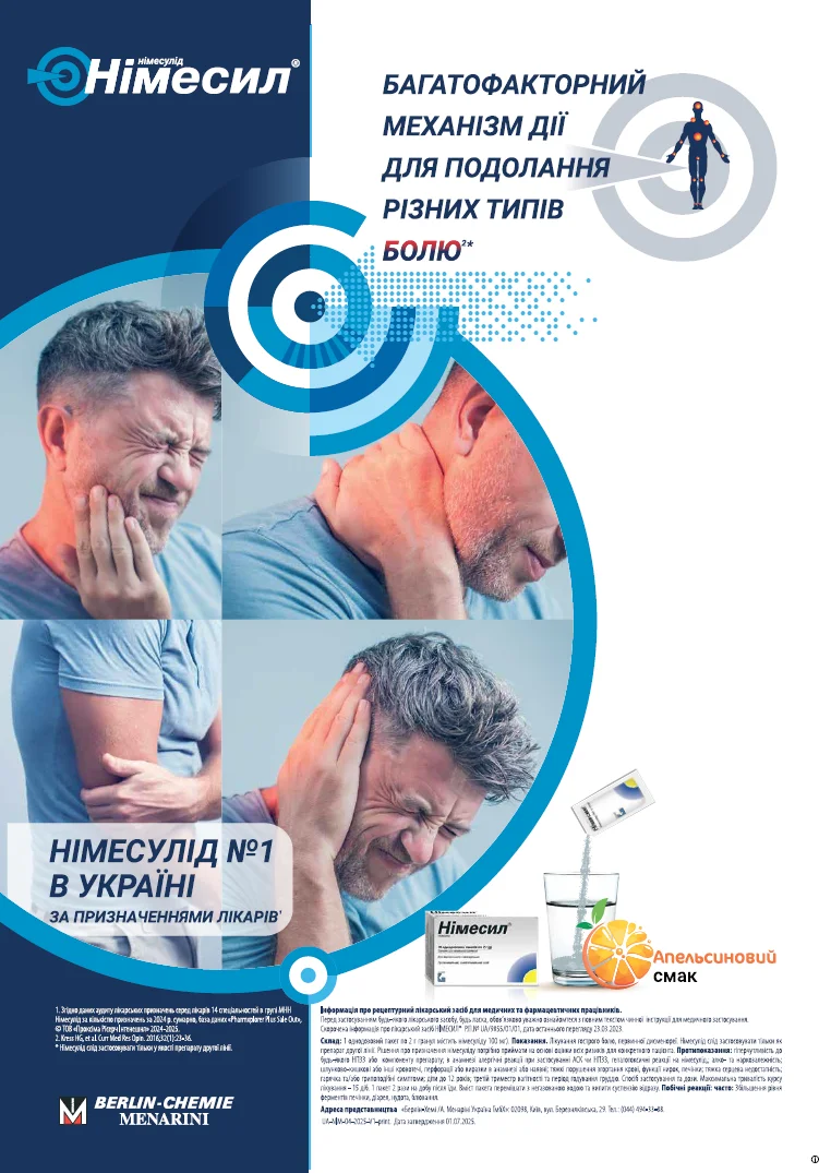 В Україні німесулід широко відомий медичній спільноті переважно під назвою Німесил®. Цей оригінальний лікарський засіб європейського виробництва вже багато років слугує надійним інструментом контролю гострого болю в практиці лікарів різних спеціальностей. Німесил® відрізняє зручна форма випуску – гранули для приготування оральної суспензії в однодозових пакетах. Рекомендоване дозування для дорослих та дітей віком >12 років – 1 пакет (100 мг німесуліду) 2 р/добу після вживання їжі. Пацієнти літнього віку, а також діти віком 12-18 років не потребують корекції добової дози. Як і всі інші НПЗП, Німесил® рекомендовано застосовувати протягом найстислішого часу для полегшення гострого болю. За потреби максимальна тривалість курсу лікування становить 15 діб, що відповідає рекомендаціям Європейської агенції з лікарських засобів (ЕМА) для безпечного застосування німесуліду.