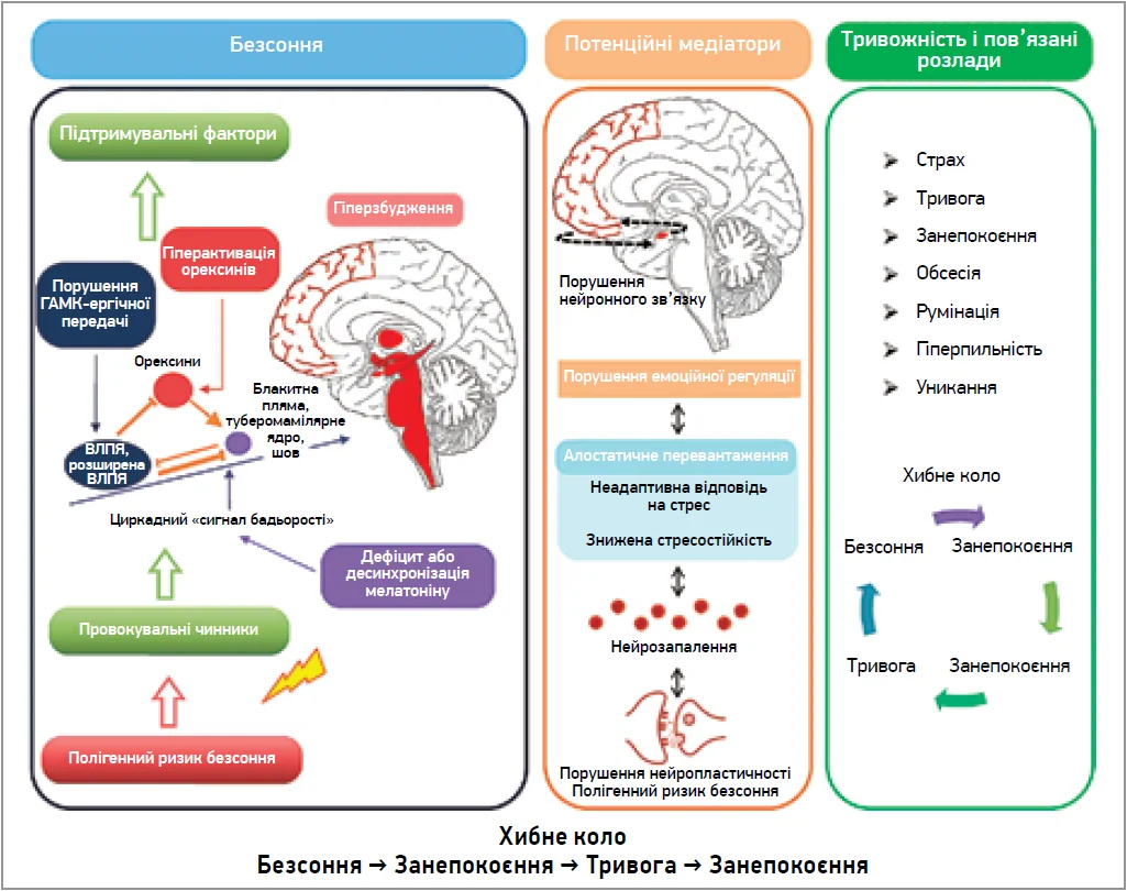 Рис. Потенційна роль безсоння в розвитку тривожності та пов’язаних із нею розладів [8]