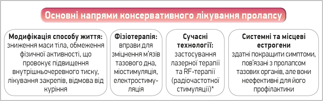 Рис. Основні напрями консервативного лікування пролапсу органів таза