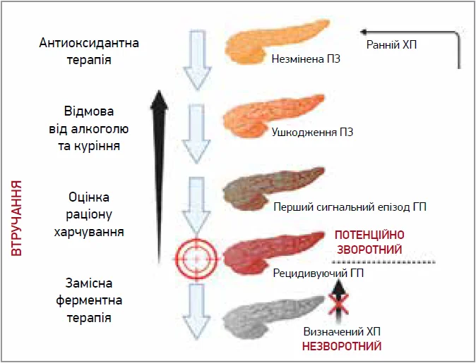 Результати декількох нещодавно представлених когортних досліджень доводять, що цілеспрямована дієтична корекція та усунення метаболічних порушень здатні покращити екзокринну функцію ПЗ, зменшити частоту рецидивів РГП і сповільнити прогресію захворювання.