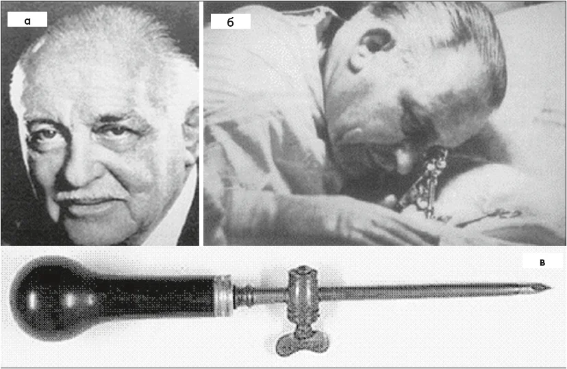Рис. 6. H. C. Jacobeaus (1879-1937) (а) та його троакар (б) [27]