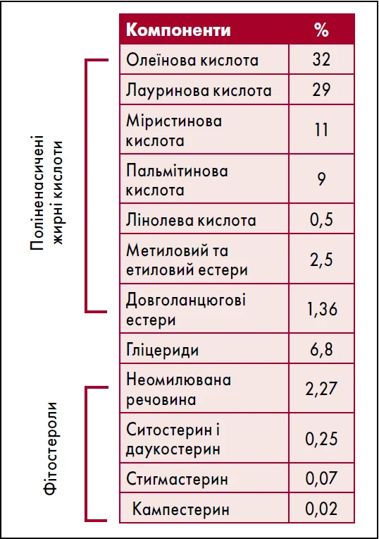 Хімічний склад стандартизованого екстракту Serenoa repens виглядає наступним чином: