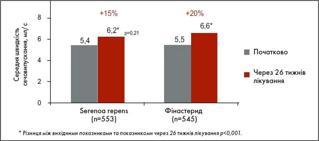 Рис. 2. Зміни середньої швидкості сечовипускання від вихідного рівня через 26 тижнів спостереження [26]