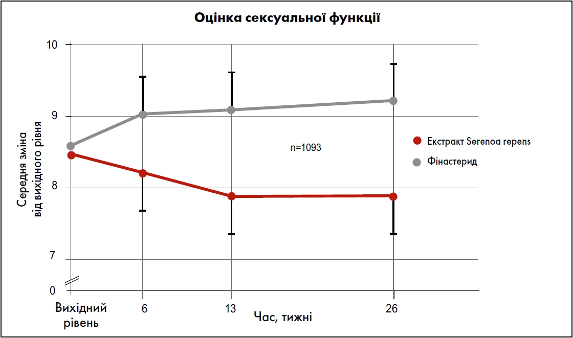Рис. 3. Порівняння ефектів препарату на основі екстракту Serenoa repens та фінастериду за опитувальником щодо сексуальної функції [26]