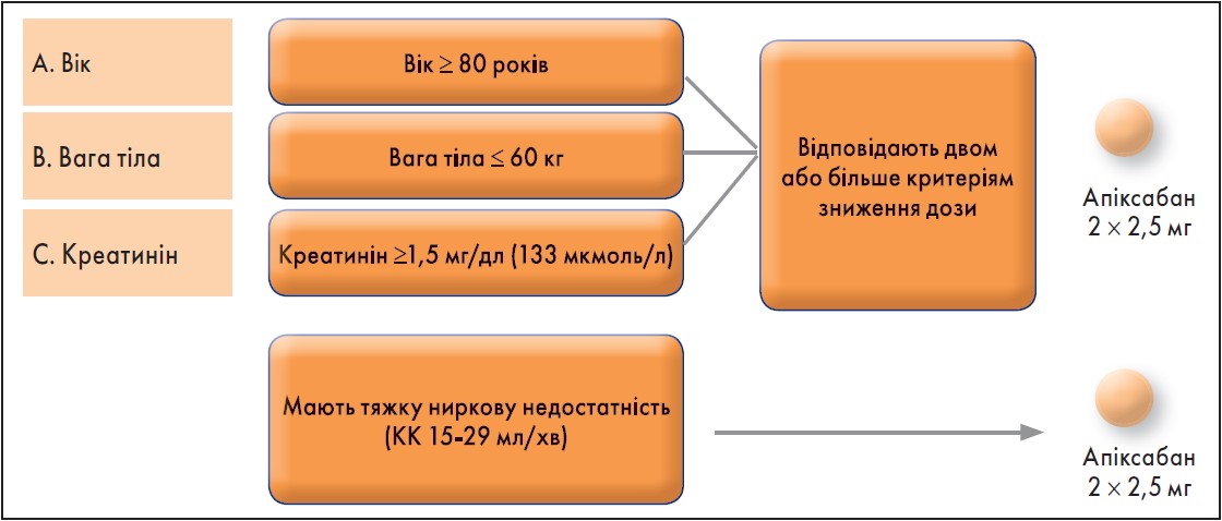 Рис. 3. Зниження дози апіксабану за критеріями АВС